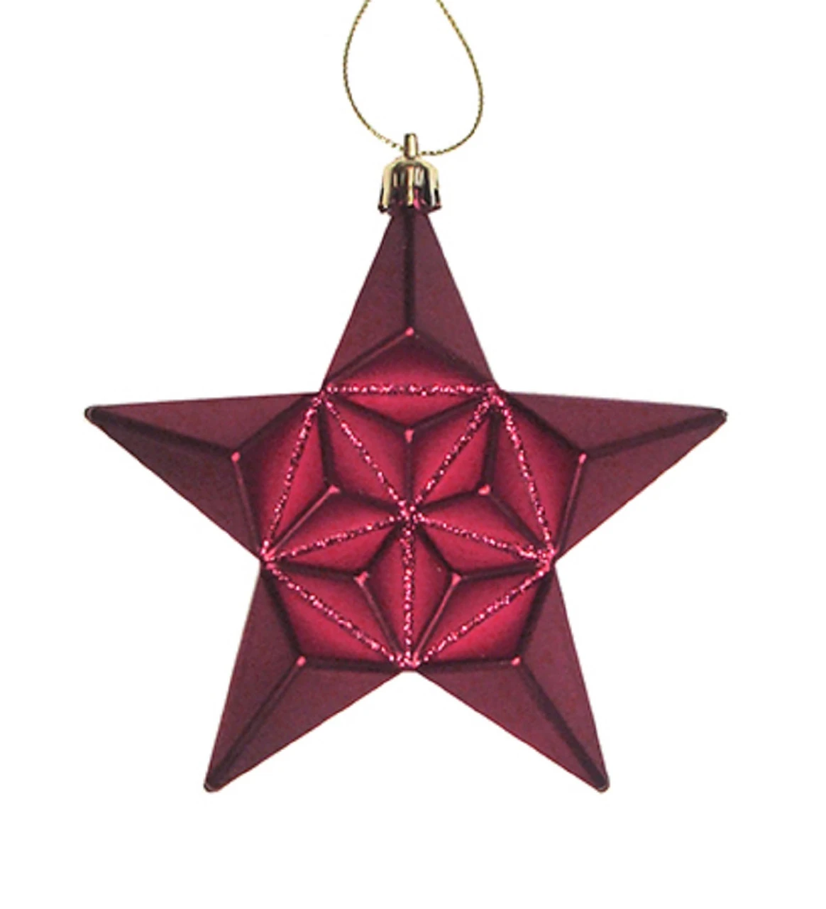 - Burgundy Glittered Star Hanging Christmas Ornaments
