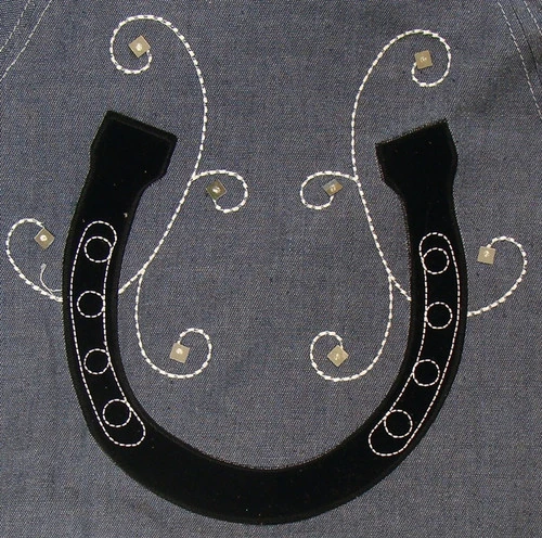 Comes with decorative stitching, tan faux suede trim, and square sequin accents