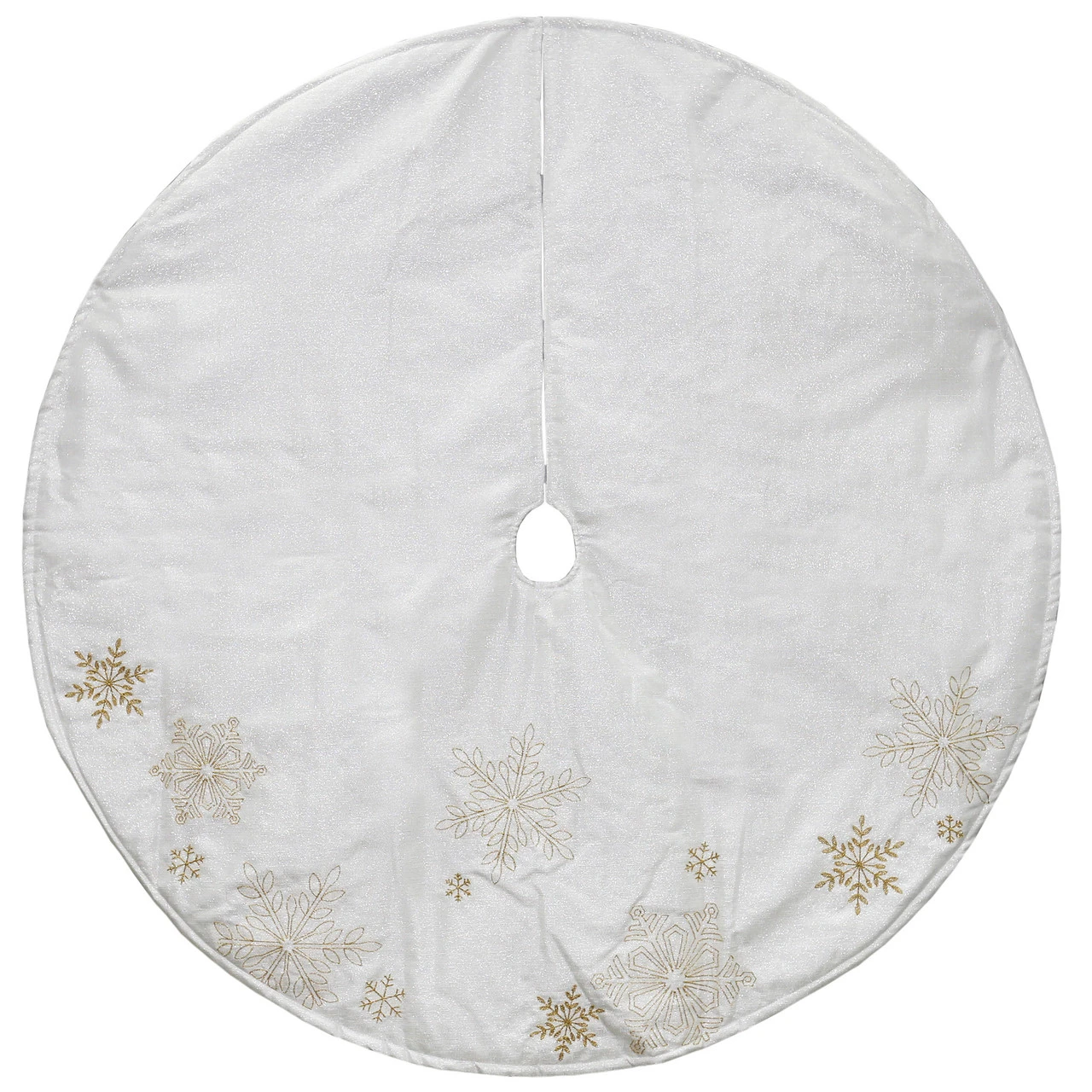 - White And Gold Snowflake Round Christmas Tree Skirt