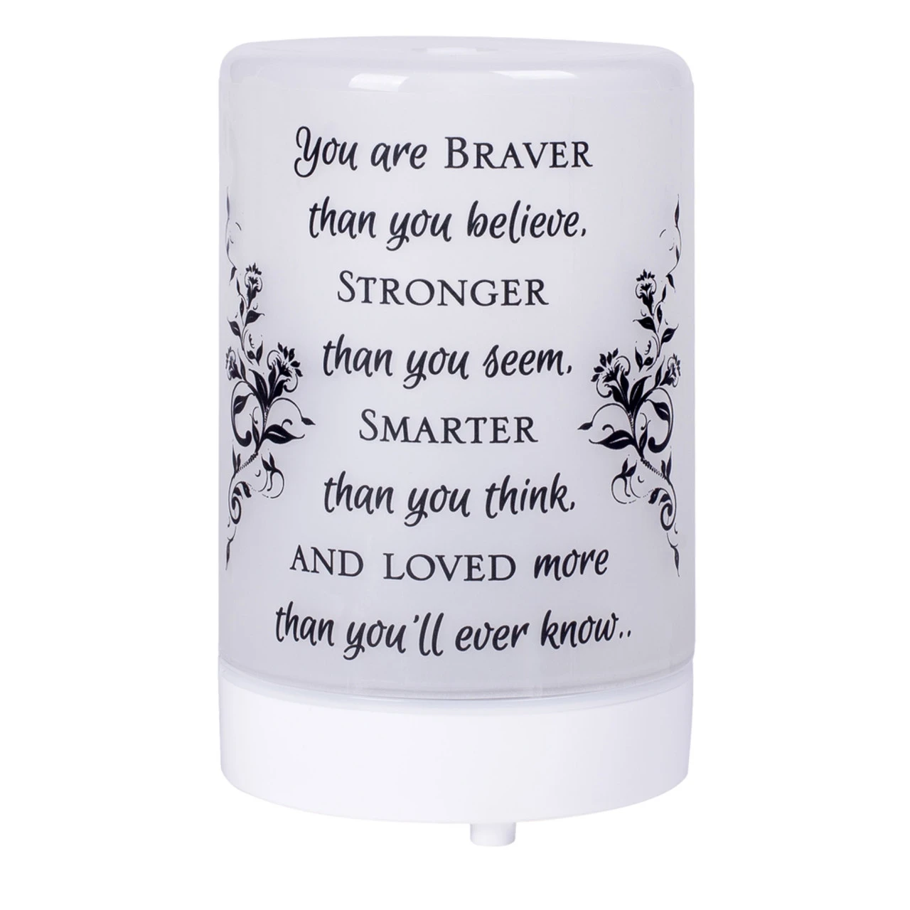 Diffuser reads “You are braver than you believe, stronger than you seem, smarter than you think, and loved more than you’ll ever know..”