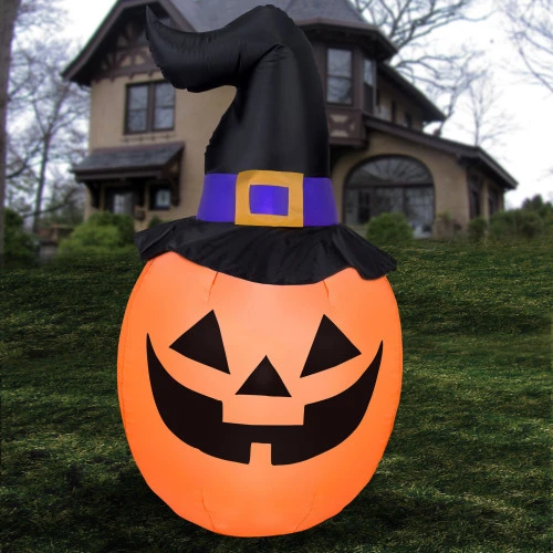 Not all Halloween decors have to be creepy and spooky! Some can be amusing! Shaded with attractive hues, this inflatable accent features a pumpkin, topped with a witch’s hat. Stake it down, plug it in and watch the fun and magic!