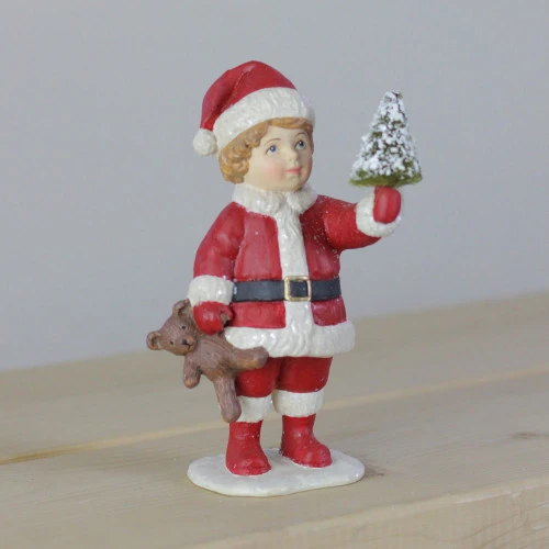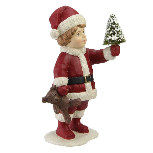 - Boy Figurine Holding A Mini Christmas Tree And Teddy Bear