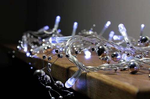 - Clear And Silver Beaded Christmas Lights With Garland