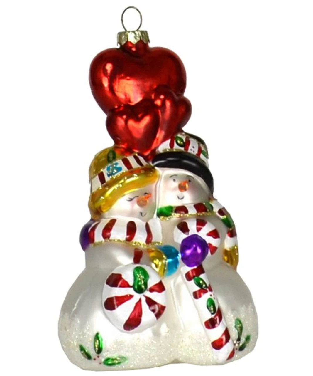 - Lovey Dovey Snowman Couple Glass Ornament
