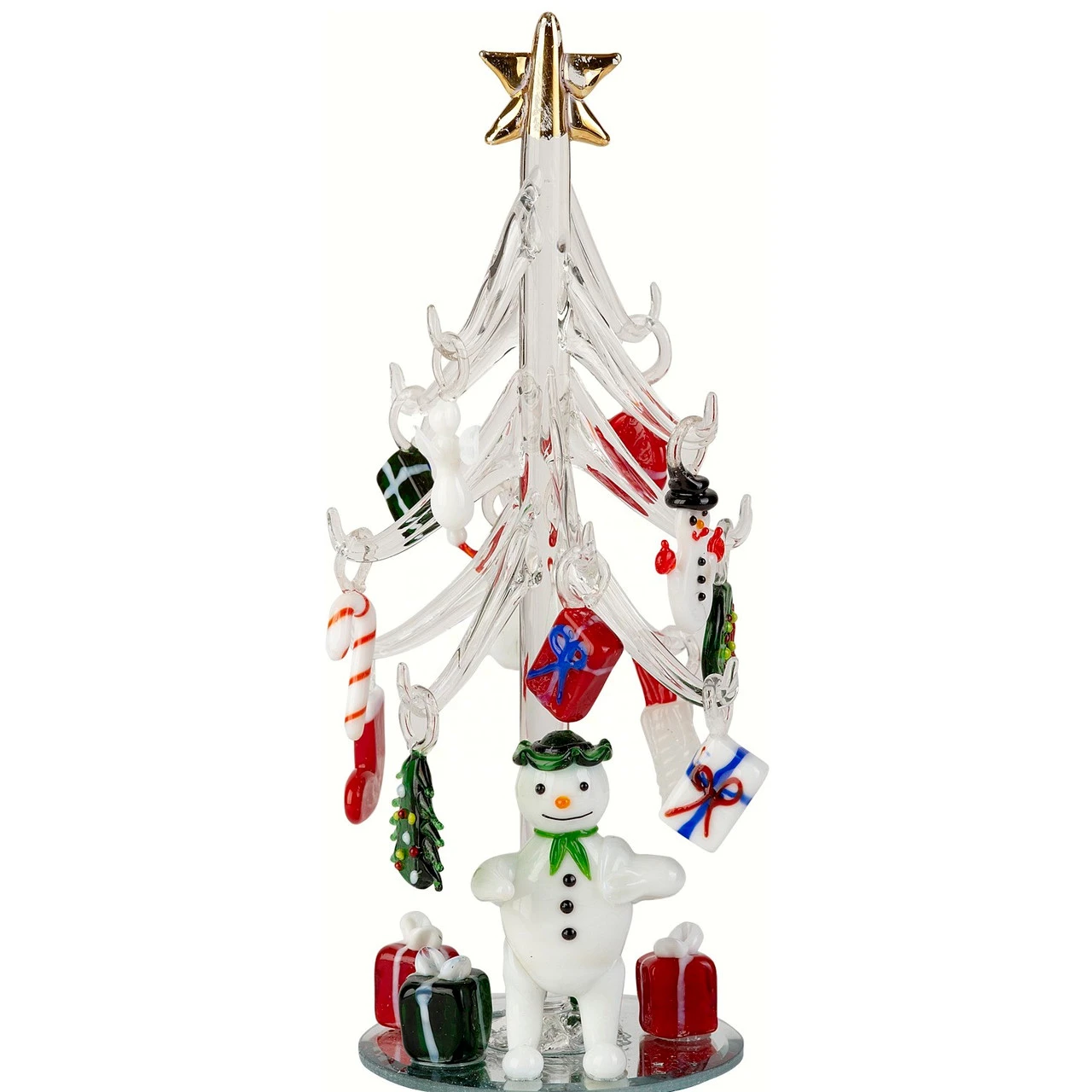 - Clear Tree Glass With Snowman And Christmas Ornaments