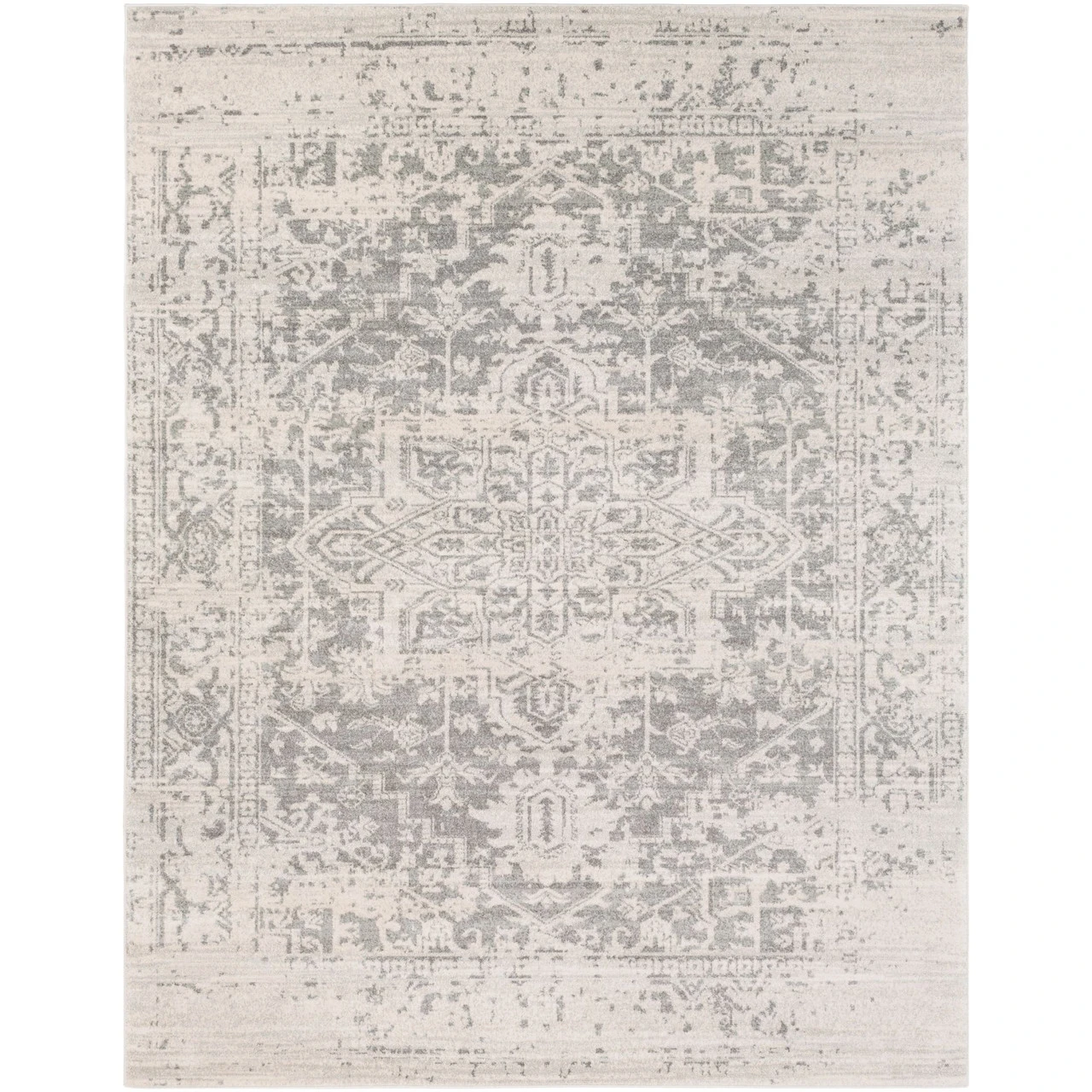- Distressed Finish Beige And Gray Area Throw Rug