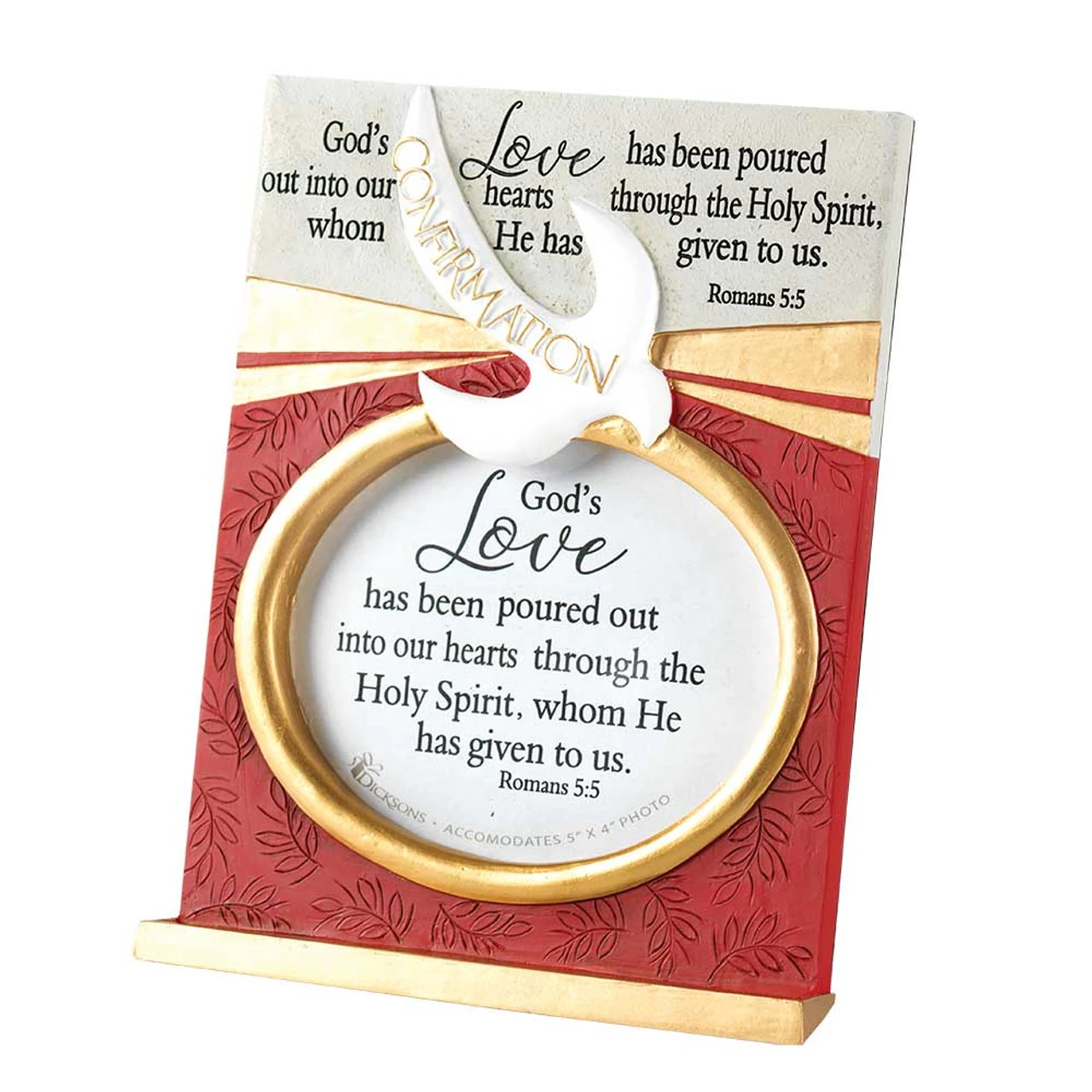 Features a raised dove and photo border with pull-out easel on back