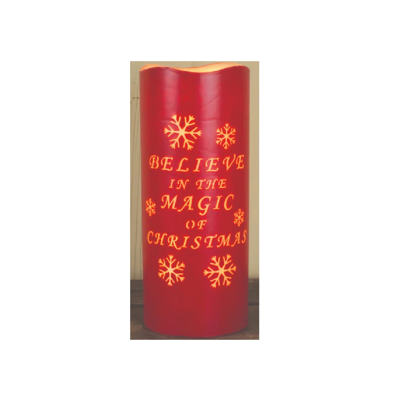 - Red Believe In The Magic Of Christmas Flameless Pillar Candle