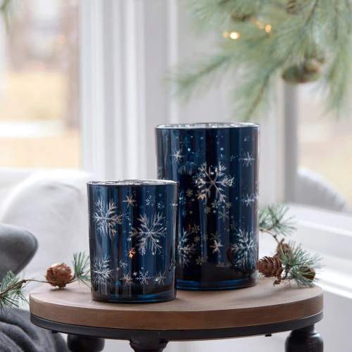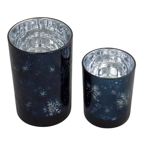 - Set Of 2 Blue And Silver Christmas Candle Holders