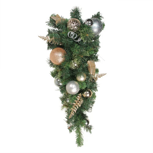 - Green And Rose Gold Artificial Pine Christmas Teardrop Swag