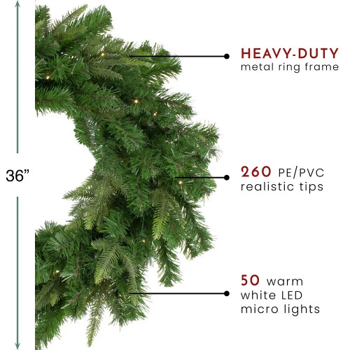 Dimensions: 36″ diameter (measured from outermost tip to outermost tip across the wreath)