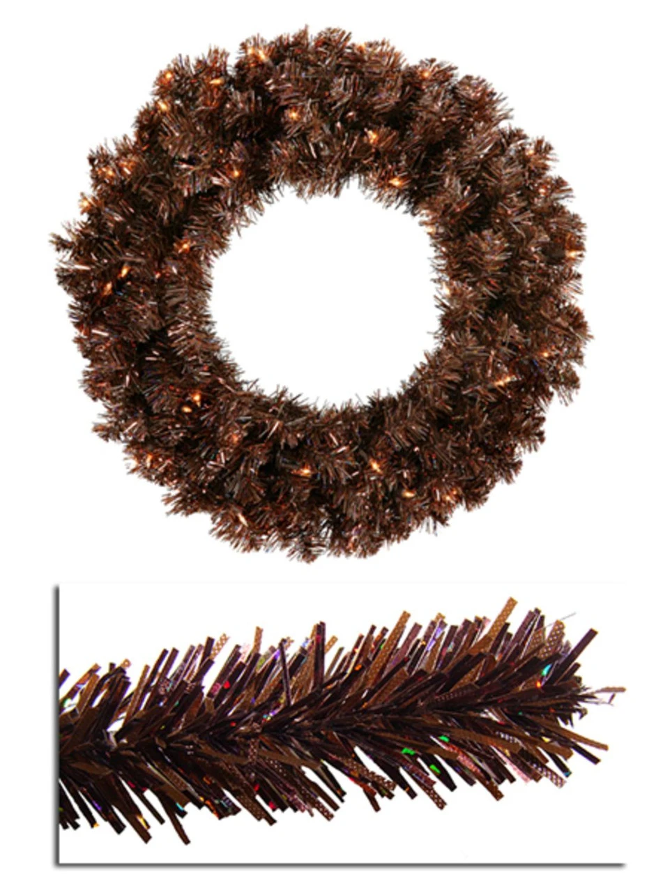 - Pre-Lit Brown Sparkling Artificial Christmas Wreath