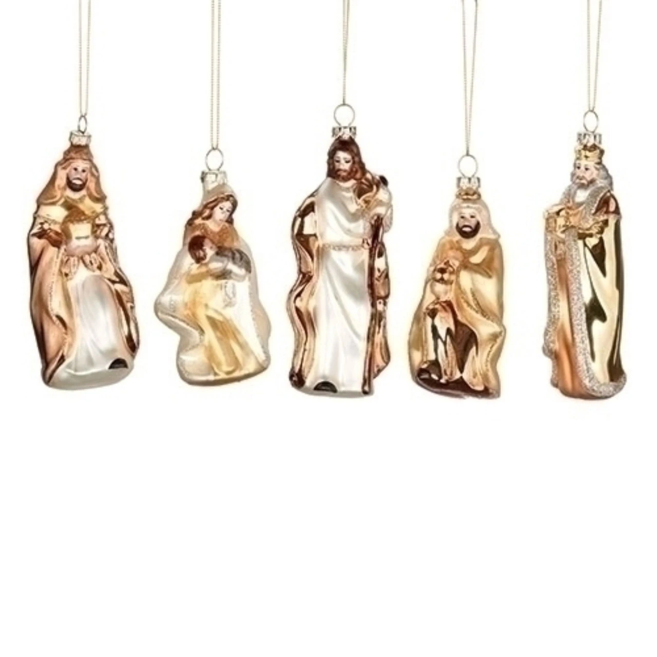 - 5 Piece White And Gold Glass Ornament Nativity Set