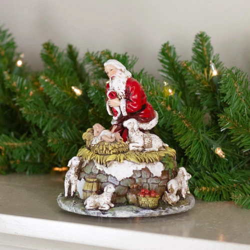 - Kneeling Santa And Baby Jesus Musical Figurine