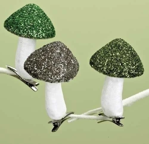 Glittered mushroom clip-on ornaments