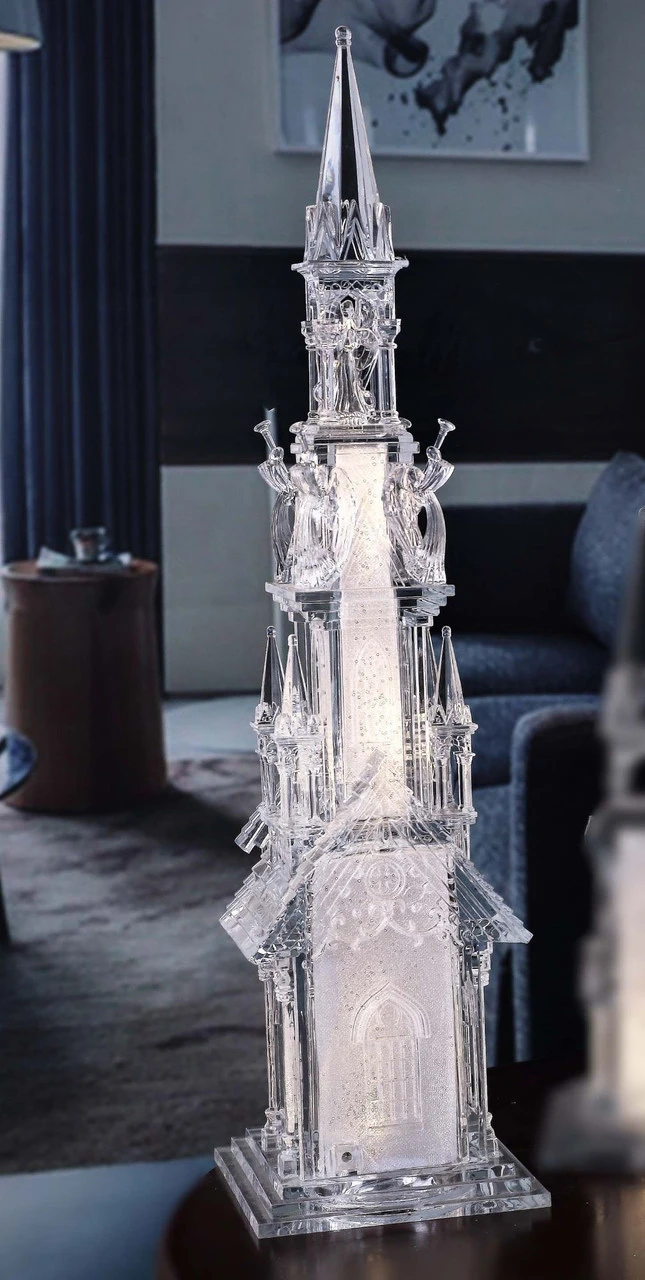 Features LED light inside the cathedral