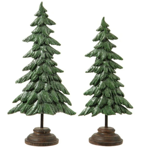 - Set Of 2 Green And Brown Pine Tree Christmas Decor
