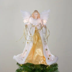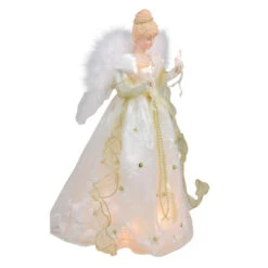 Kurt Adler 14″ Lighted White Fiber Optic Floral Angel Christmas Tree Topper – Multi-Color LED Lights