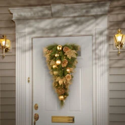 Christmas Central 32″ Pre-lit Frosted Berry Snowflake Artificial Christmas Teardrop Swag, LED Lights